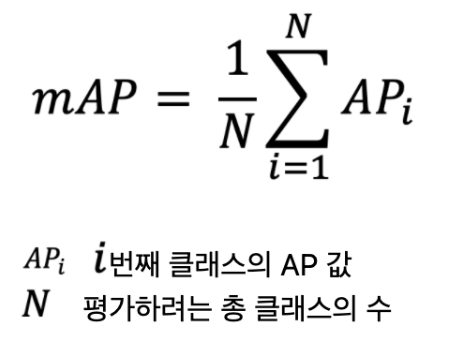 여러 class에 대한 AP를 구하며 평균값을 구함 => mAP