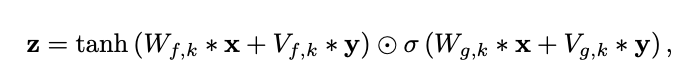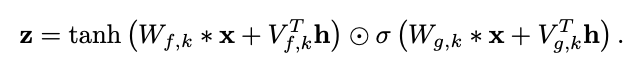 게이트된 PixelCNN에서 사용된 것과 동일한 게이트 활성화 유닛 사용