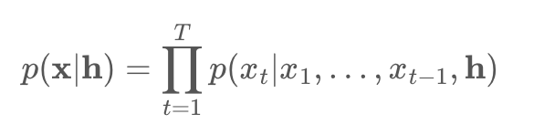 추가 입력 h가 주어지면 오디오 조건부 분포 P(x|h) 모델링 가능