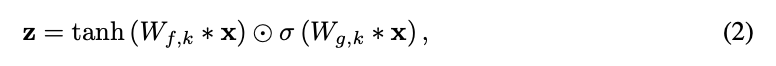 gated pixelCNN에서 사용된 gated activation unit 사용