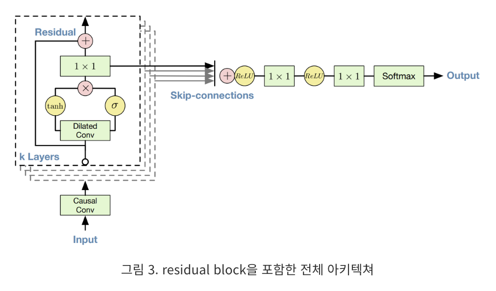=> dilated & causal 개념 => 엄청난 크기의 receptive field를 갖는 모델 구조