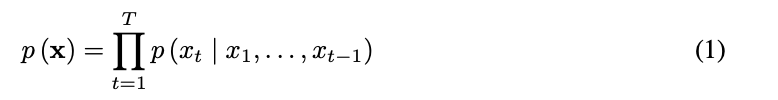 각각의 음성 샘플 Xt : 이전 모든 시간 단계의 샘플들을 정보로 갖음