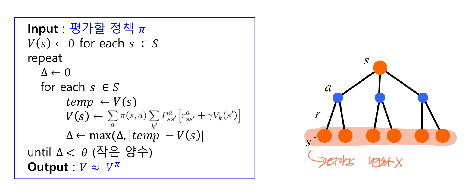 -> 임의의 가치함수에서 시작해 Vk가 수렴할 때까지 반복한다