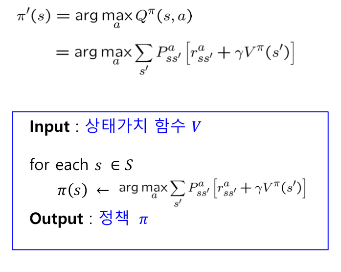 -> 상태 가치 함수 V(s)값으로부터 정책 π를 결정함