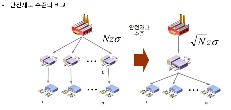 수요의 변동성 감소 -> 안전재고 감소 -> 평균 재고 수준 감소