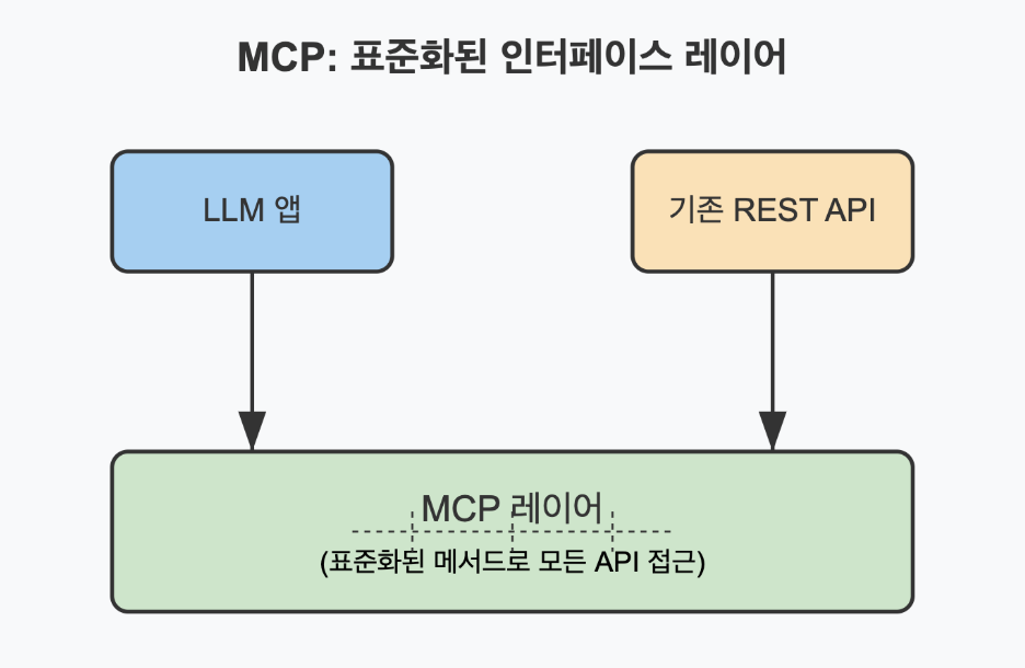 다시 말하면 이제 MCP로 LLM에 전달할 외부 API를 규격화할 수 있다라는 것을 의미한다.